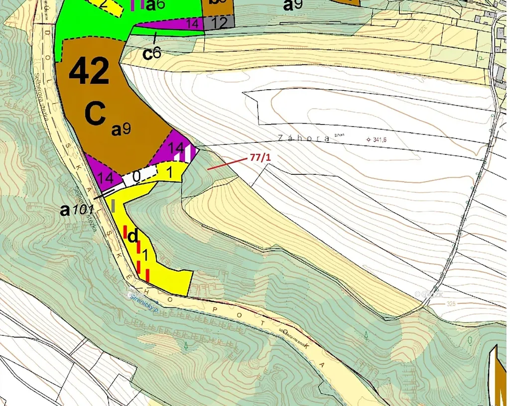 Lesní pozemek o výměře 4432 m2, parcelní číslo 77/1, podíl 1/1, katastrální území Víska u Březovic, obec Březovice, obec s rozšířenou působností Mladá Boleslav, okres Mladá Boleslav, Středočeský kraj. Po těžbě.