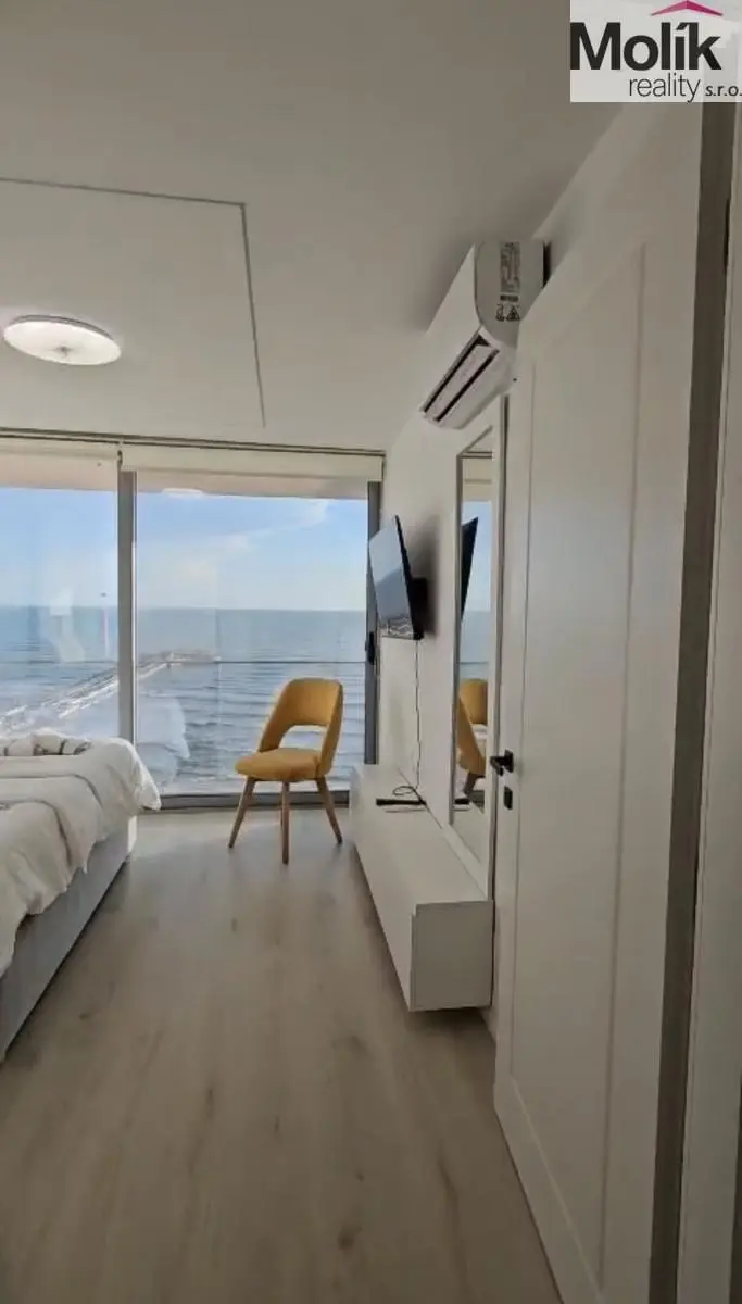 Nabízíme k prodeji tento výjimečný mezonetový byt v 1. linii u moře představuje absolutní špičku pobřežního bydlení. Nachází se přímo na pláži a nabízí nepřerušovaný, přímý výhled na moře, který si můžete vychutnávat z obývací části i ložnice doslova pár kroků od vln.