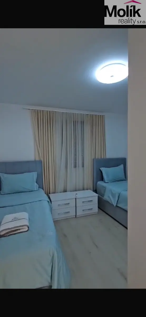 Interiér je zařízen ve světlých, přírodních tónech s důrazem na detail, kvalitu materiálů a harmonii s okolním prostředím. Samozřejmostí je klimatizace, kvalitní podlahy a moderní osvětlení. Díky své poloze v první linii nabízí byt nejen luxusní bydlení, ale také mimořádný investiční potenciál s vysokou atraktivitou pro krátkodobé i dlouhodobé pronájmy.