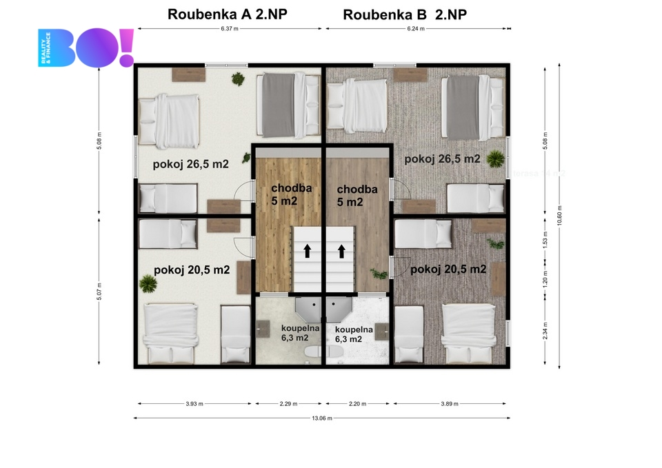 - 1 roubenku (A v půdorysu) 157 m2 (kapacita až 14 osob)