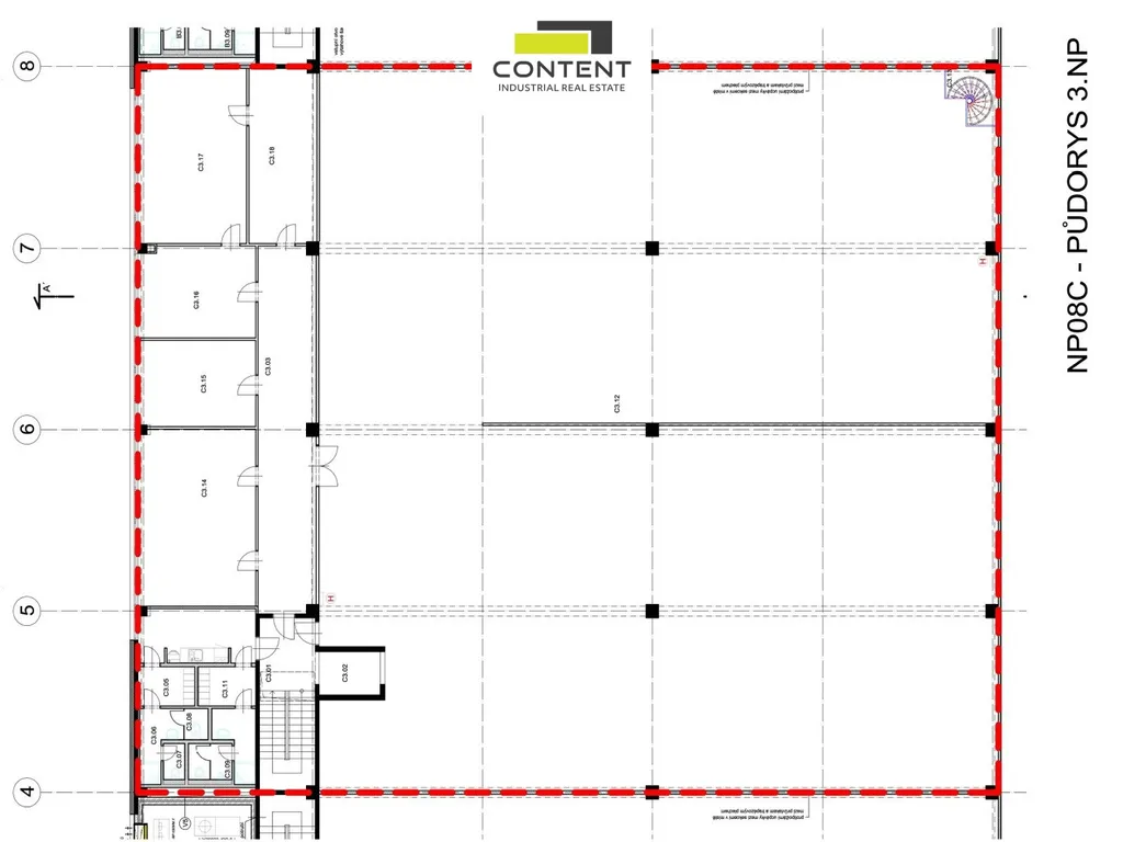 - prostory v přízemí 450 m² a 3. NP komerční budovy 1121 m² + schodiště 20 m²