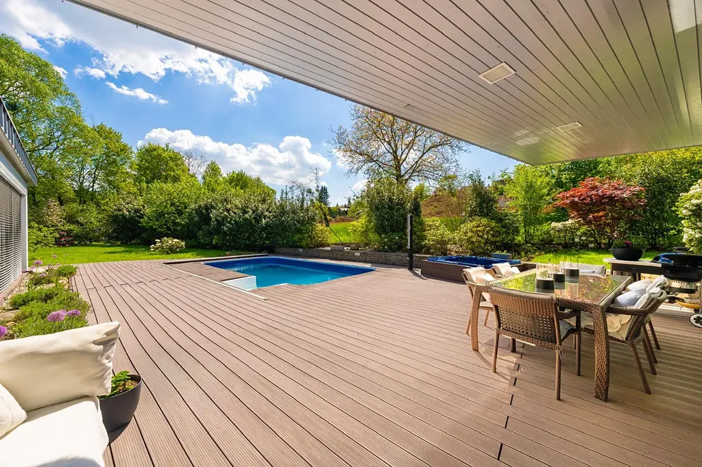V tomto domě si budete užívat relaxaci na nejvyšší úrovni. Vyhřívaný bazén s protiproudem a venkovní Whirlpool vám umožní dopřát si wellness každý den. Dvě zastřešené terasy, jedna u obývací haly a druhá u ložnice, poskytují klidné místo pro odpočinek v soukromí.