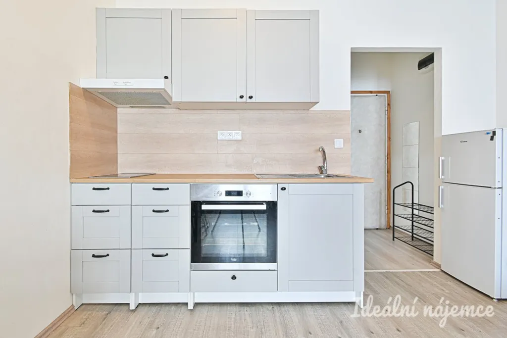 Interiér je chytře řešený a působí vzdušně: obývací část s kuchyňským koutem poskytuje vše potřebné pro každodenní fungování i příjemné večery doma. Kuchyně je plně vybavená, stejně jako celý byt, takže se můžete rovnou nastěhovat bez dalších investic.