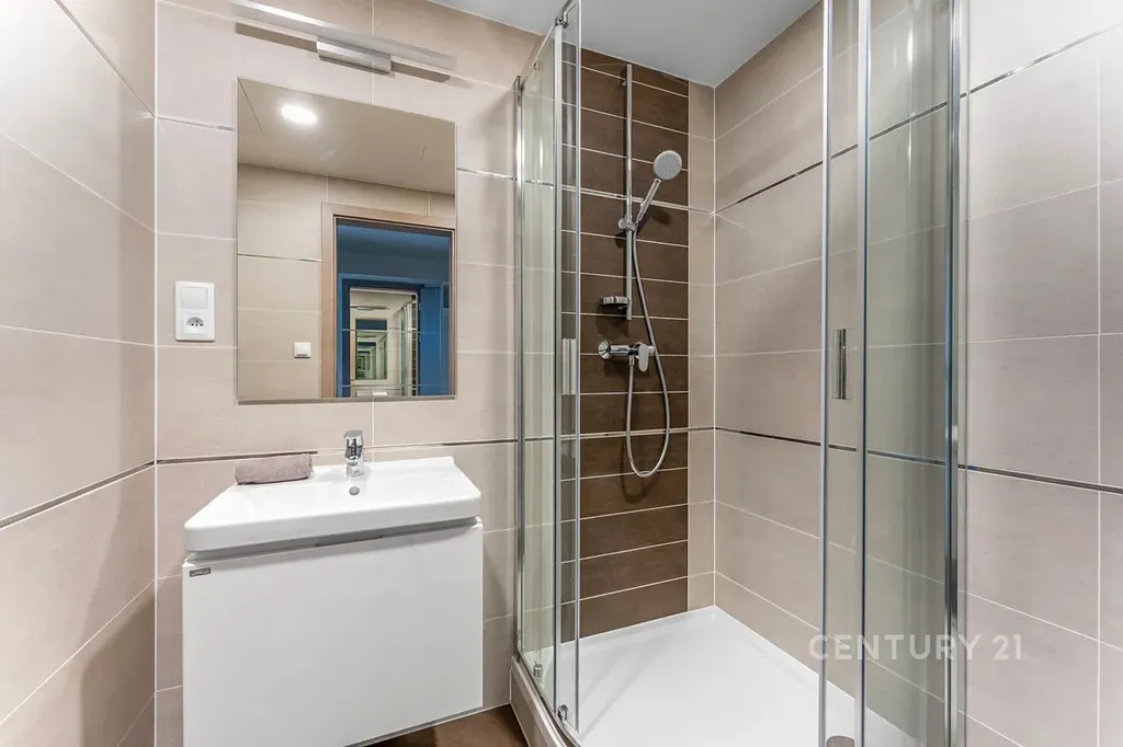 Interiér bytu je částečně zařízen a nabízí moderní vybavení včetně vestavěné lednice s mrazákem, elektrické varné desky, vestavěné elektrické trouby a digestoře. Dále je k dispozici nový praktický rozkládací gauč, skříň, stůl, a závěsy včetně záclon.
