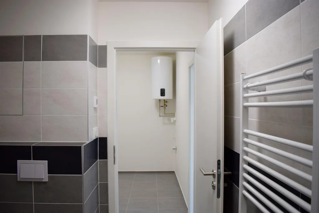 Byt byl v letošním roce zkolaudován, tedy je zde výhoda prvního nájemníka- všechno nové.