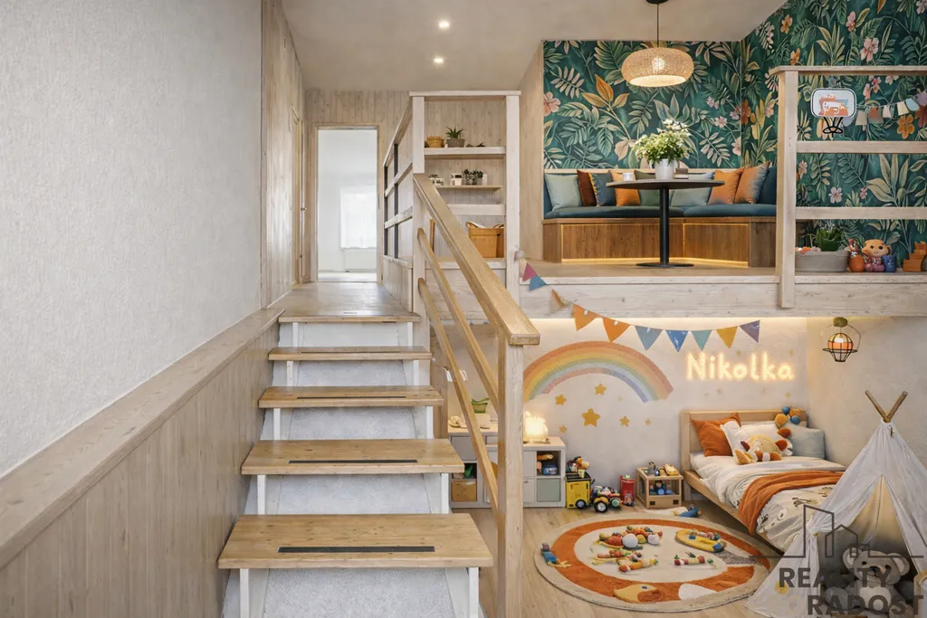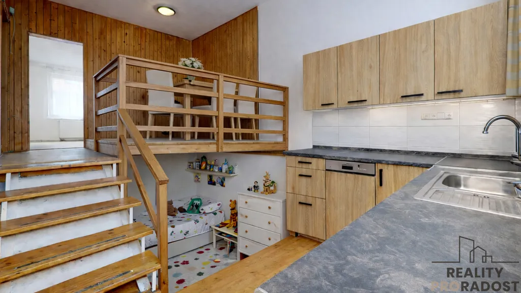 Byt nabízí chytré uspořádání a navíc zajímavý atypický prvek – galerii, která prostoru dodává charakter a otevírá možnosti kreativního řešení (pracovna, spaní, úložné řešení). Samozřejmostí je také sklep, který zvyšuje komfort budoucích nájemníků.