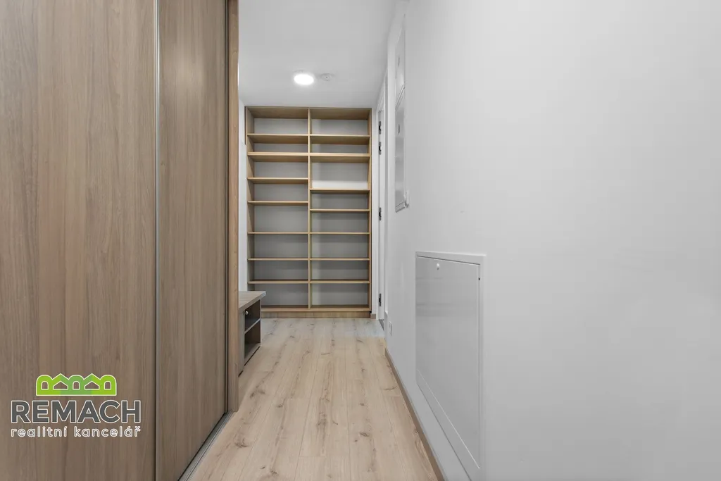 Moderní pojetí bytu dovytváří venkovní elektrické žaluzie, automatické větrání s rekuperací tepla, podlahové vytápění, tepelné čerpadlo, velkoprostorová okna s izolačními trojskly se vstupem na velký balkon.