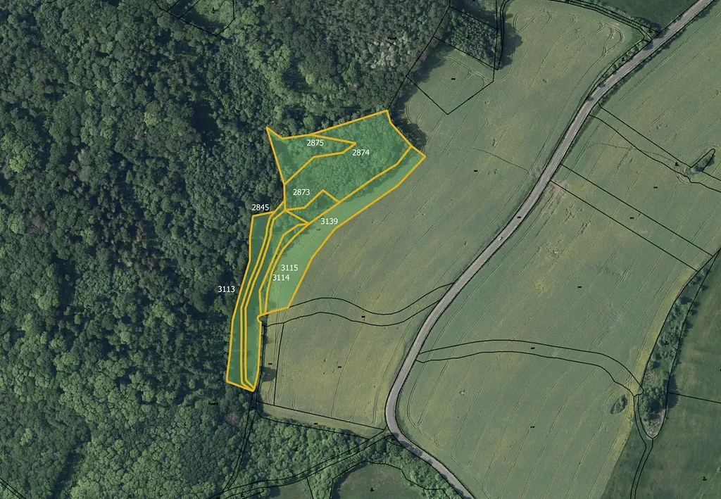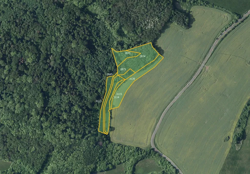 Součástí souboru je orná půda o výměře 6 719 m², která sousedí s lesním pozemkem (parcela č. 2874). Takové uspořádání zajišťuje přirozené oddělení pozemků a možnost efektivního využití.