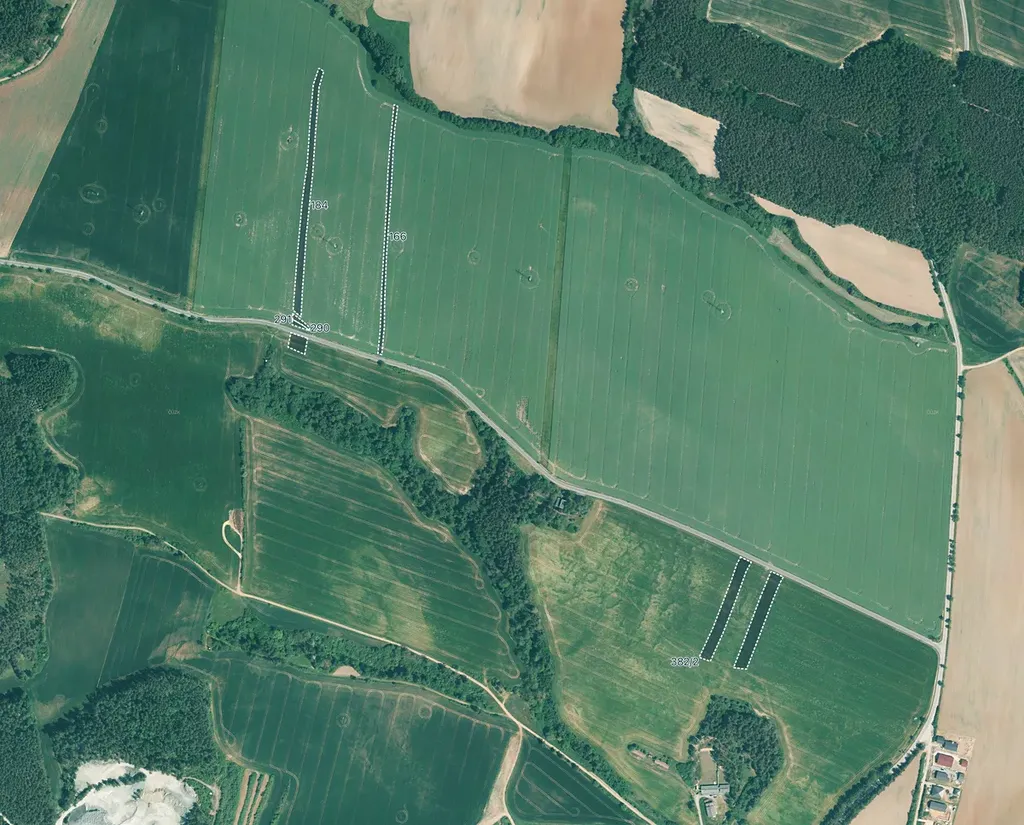 Jedná se o pozemky parc. č.: 166, 184, 290, 291, 292/1, 382/2 a 382/3. Celková výměra těchto pozemků činí 12 485 m² a celý tento rozsah je předmětem prodeje. Všechny parcely jsou vedeny jako orná půda.
