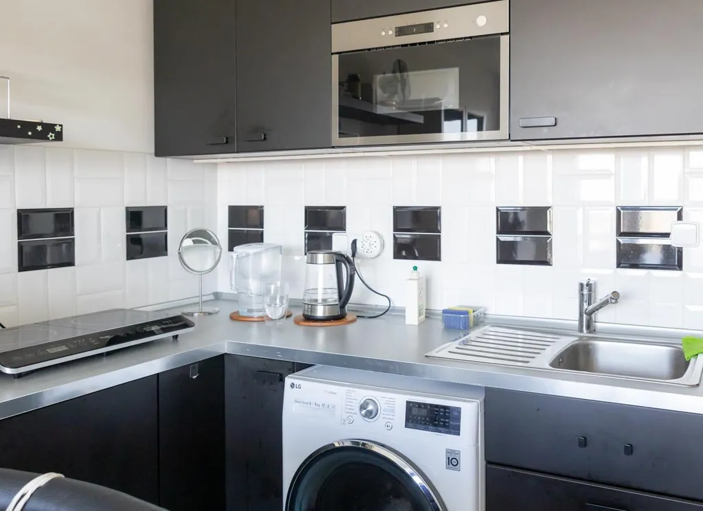 Byt se nabízí plně vybavený. Kuchyně disponuje lednicí, varnou deskou a pračkou. Dále v byte najdeme šatní škříň, knihovnu, postel, barové posezení. V koupelně je sprchový kout a toaleta.