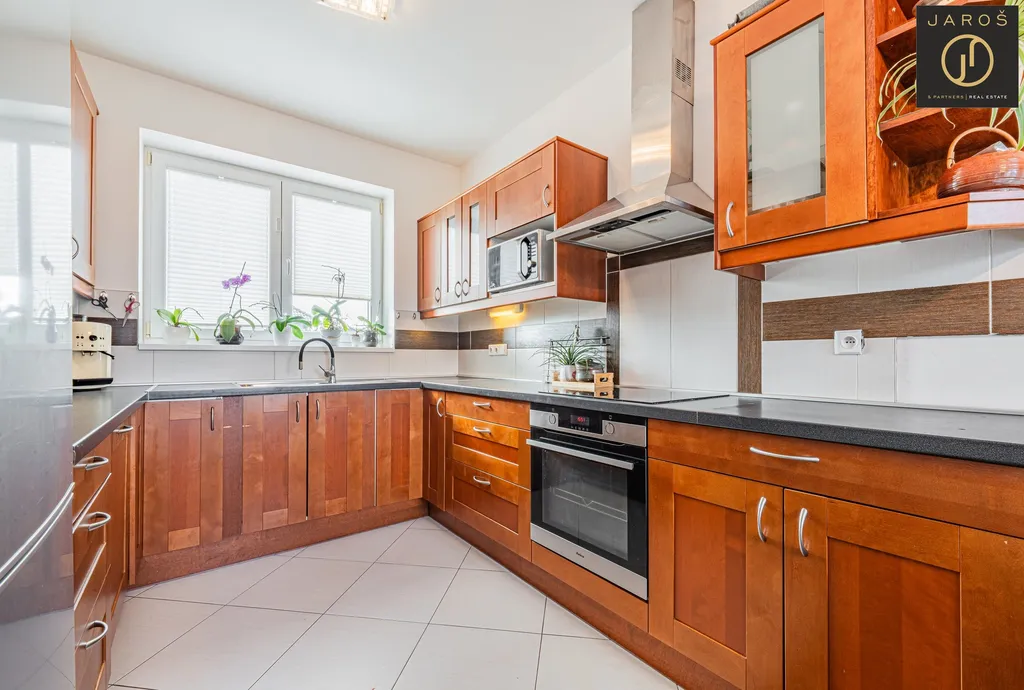 Dispozičně je dům řešen velmi prakticky. V přízemí se nachází zádveří, chodba s vestavnou skříní, samostatné WC, technická místnost, spíž a obývací pokoj s kuchyní a jídelním koutem. Z obývací části je přímý vstup francouzským oknem na terasu a zahradu. V patře je umístěna prostorná koupelna s rohovou vanou, ložnice a dětský pokoj, dále je k dispozici půdní prostor pro případné uložení nepotřebných věcí.