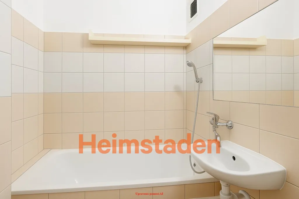 Koupelna je vybavena obklady a dlažbou, vanou, umyvadlem a pákovými bateriemi, vše v udržovaném a funkčním stavu. Byt působí světlým a vzdušným dojmem a je připraven k nastěhování.