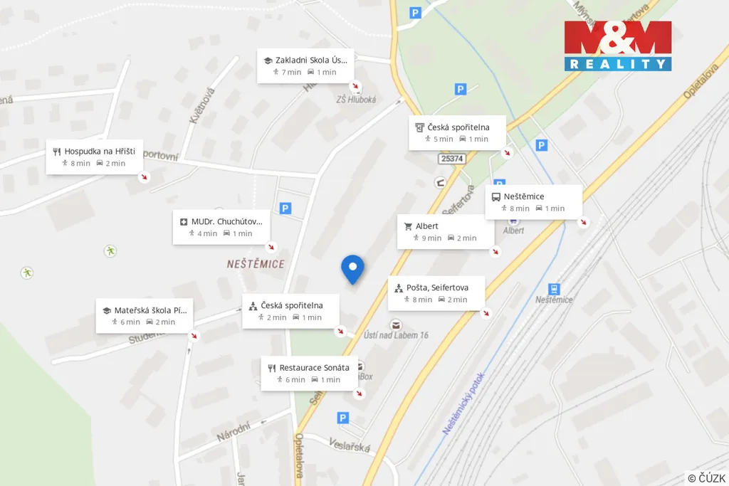 Byt se nachází v klidné a zelené lokalitě, ideální pro pohodlné bydlení. V okolí je dostatek zeleně, dětské hřiště a kompletní občanská vybavenost – škola, školka, obchod i další služby v docházkové vzdálenosti.