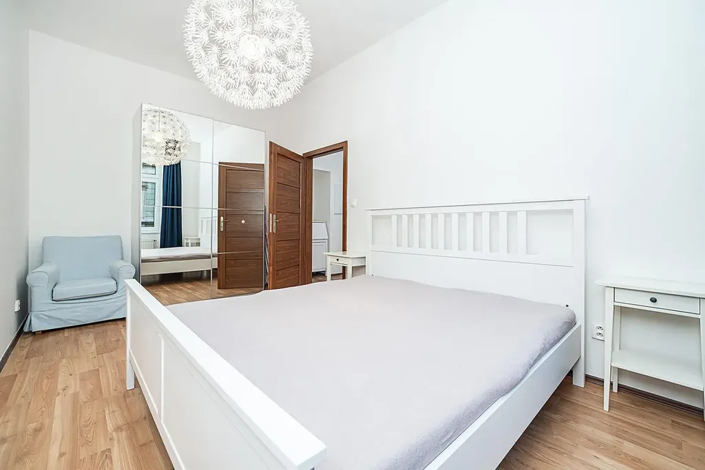 Díky velkým oknům je byt velmi světlý a působí vzdušným dojmem. Interiér je plně vybaven moderním nábytkem, čerstvě vymalovaný a připravený k okamžitému užívání. Nemovitost je ideální jak pro vlastní bydlení, tak jako investiční příležitost v jedné z nejžádanějších lokalit Prahy.
