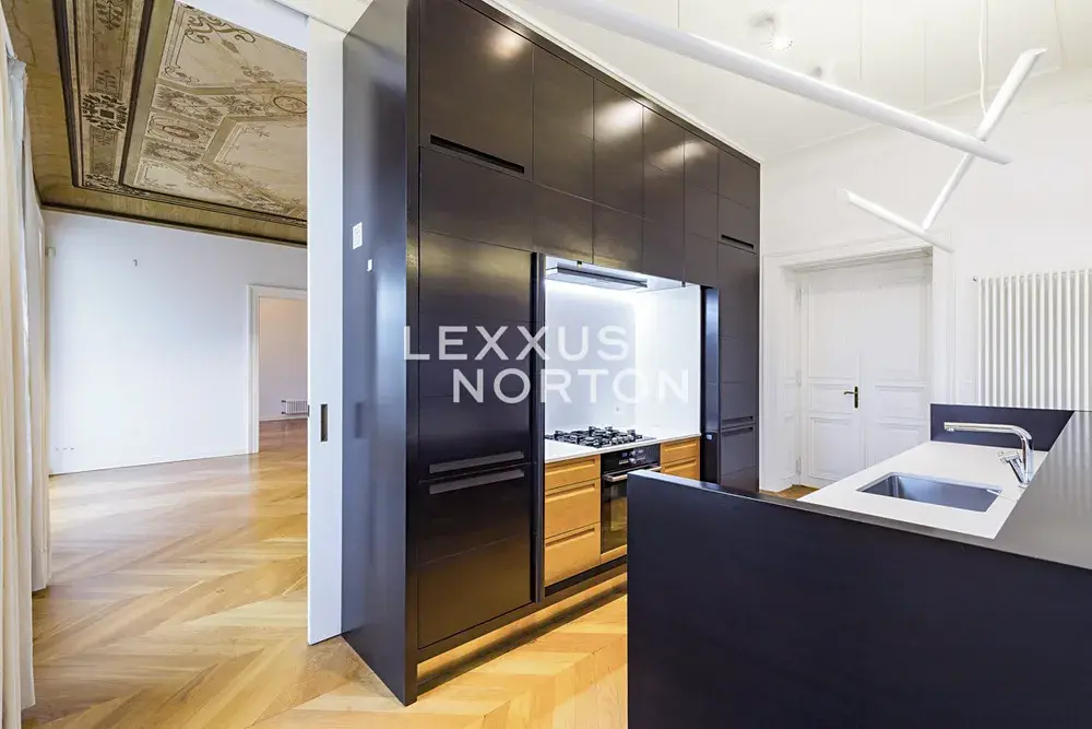 Velkoryse rekonstruovaný, nezařízený byt k pronájmu v historickém centru Prahy se zachovanými původními prvky o dispozici 3+1 a celkovou výměrou 160 m2 v exkluzivní historické lokalitě Praha 1 - Staré Město. Prostorný, světlý byt k pronájmu v samém centru města, v 5. nadzemním podlaží šestipodlažního secesního činžovního domu s výtahem.