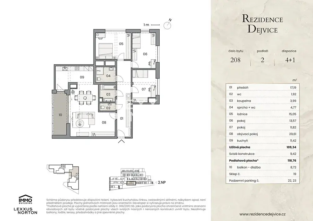 Nabízíme k prodeji výjimečný byt 4+1 ve druhém nadzemním podlaží luxusního projektu Rezidence Dejvice. Tento nadstandardní rodinný byt zaujme velkorysou podlahovou plochou 118,76 m² a dokonalým propojením interiéru s exteriérem – k bytu náleží prostorný balkon, což umožňuje naplno využít kouzlo bydlení v zeleni i naprostém soukromí.