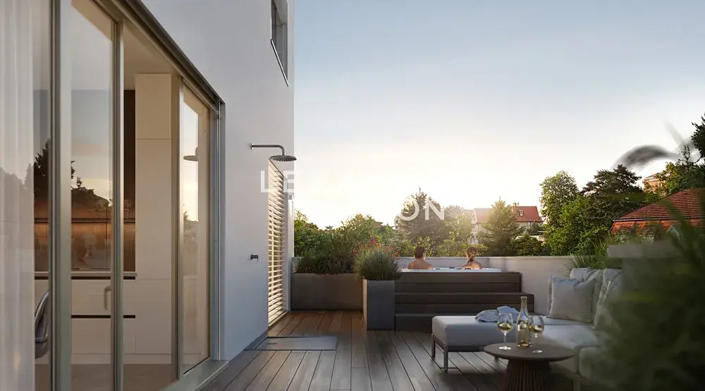 Veškeré vybavení bytu odpovídá prémiovým standardům . Hliníková okna s izolačním trojsklem jsou vybavena elektricky ovládanými venkovními žaluziemi, což zajišťuje dokonalé ticho, soukromí i tepelný komfort v každém ročním období. V obytných místnostech jsou položeny dubové parkety, které vnášejí do prostoru eleganci a útulnost. O vzduch v bytě se stará centrální rekuperace s čističkou vzduchu. Stropní vytápění a chlazení lze ovládat přes mobilní aplikaci, což umožňuje plně přizpůsobit teplotu aktuálním potřebám. Byt je rovněž vybaven chytrou domácností. Koupelna je vybavena sanitou značek Villeroy & Boch a Hansgrohe, což zaručuje vysoký komfort i dlouhou životnost. Majitel bytu ocení také přípravu na instalaci venkovní sprchy, markýzy na terase, sauny nebo večerního osvětlení.