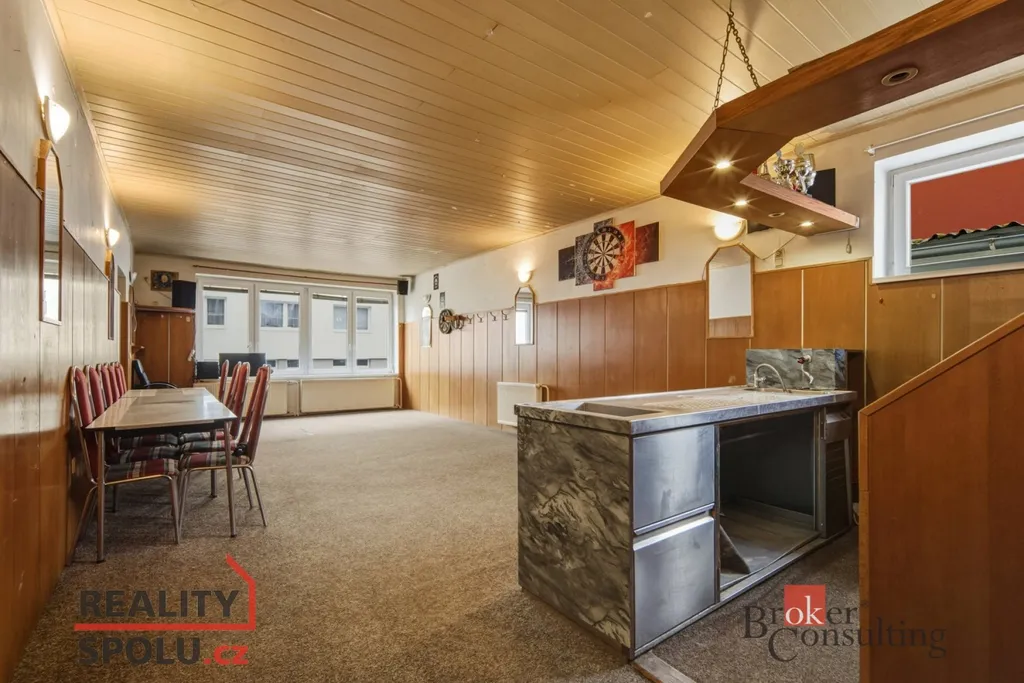 V přízemí domu se nachází plně funkční hospoda s kuchyní a zázemím, na kterou přímo navazuje venkovní posezení, ideální pro letní provoz. Součástí přízemí je také bytová jednotka 1+1, vhodná k bydlení či pronájmu.