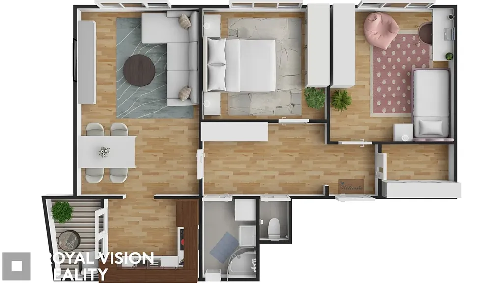 Dispozičně je byt řešen velmi prakticky. Dominantou bytu je prostorný obývací pokoj o výměře 18,11 m², který nabízí dostatek místa jak pro odpočinkovou část, tak pro jídelní kout. Další dva pokoje o velikosti 12,92 m² a 10,85 m² lze využít jako ložnici, dětský pokoj či pracovnu. Kuchyně o velikosti 7,2 m² je samostatná a prošla rekonstrukcí v roce 2022. Je vybavena moderní kuchyňskou linkou s plynovým sporákem, elektrickou troubou, mikrovlnnou troubou, digestoří a myčkou nádobí.