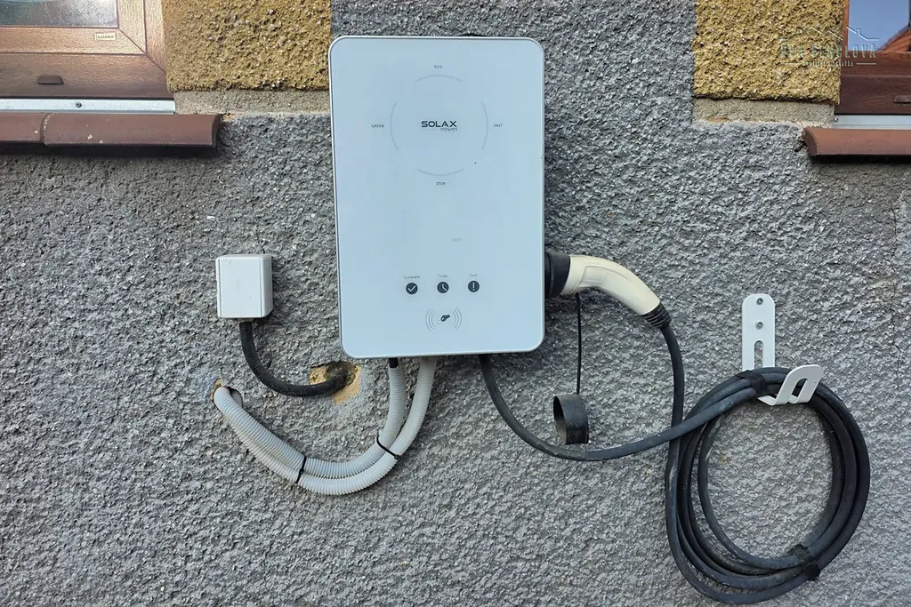 podkroví. Vytápění zajišťuje tepelné čerpadlo, na střeše domu je fotovoltaika se 14 panely s akumulací do 4 baterií. Voda je z kopané studny, k níž v roce 2018 přibyl 69 m hluboký vrt. Na domě je umístněná nabíjecí stanice na elektromobil. Pro posezení s rodinou nebo přáteli je připravena nově postavená pergola.
