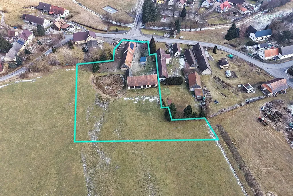 Nemovitost se nachází na rozsáhlém pozemku 7000 m². Zastavěná plocha včetně RD, garáže, stodoly, chlévů a nádvoří je 1529 m², zahrada má rozlohu 903 m². Zbytek pozemku tvoří rybník s plochou 559 m² a 4009 m² luk, nyní využívaných jako pastviny.