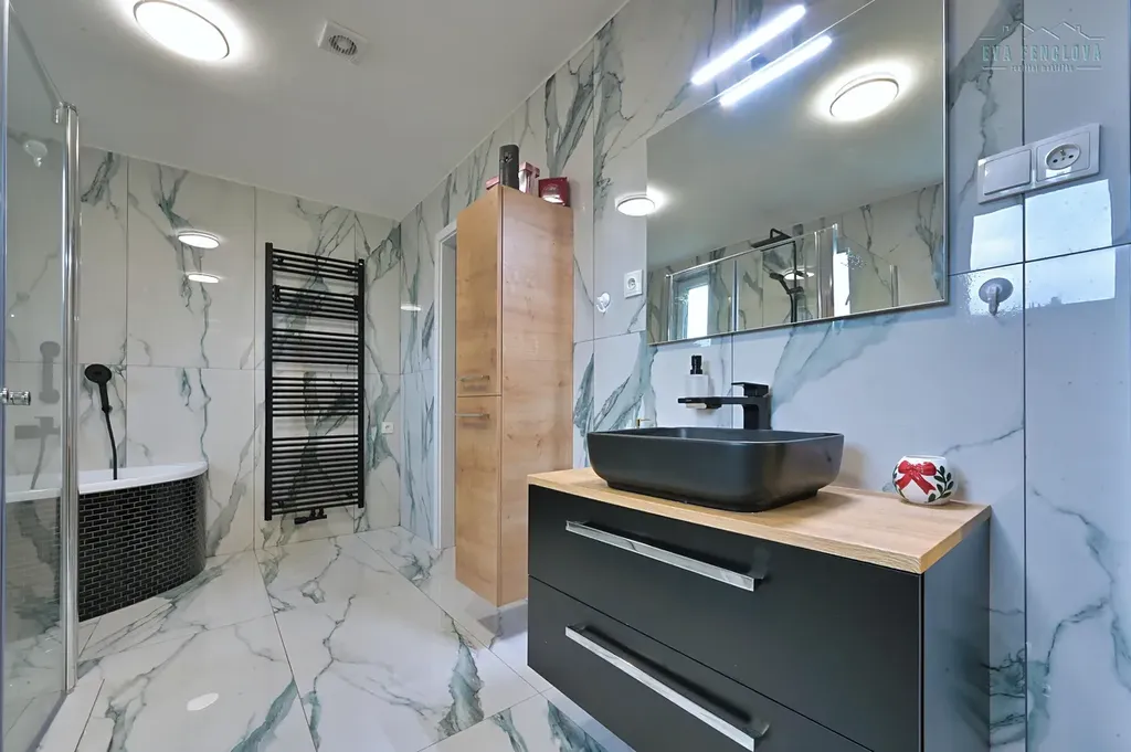 Interiéry domu jsou po vkusné a nákladné rekonstrukci, obytnou plochu lze zvětšit vybudováním