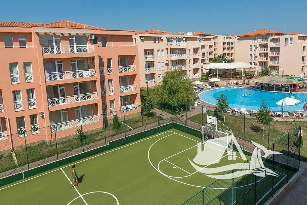 Rezidenční komplex Sunny Day 6 patří k nejrozsáhlejším a nejlépe fungujícím projektům v oblasti. Areál je koncipován jako uzavřený svět se zelenými plochami, sportovišti a místy pro relax. K dispozici je několik venkovních bazénů s oddělenými částmi pro děti, restaurace a kavárny, menší obchody, fitness a wellness zóna, tenisové kurty, multifunkční hřiště, minigolf, dětská hřiště, nepřetržitá ostraha a parkování. Kyvadlová doprava zajišťuje pohodlné spojení s pláží i centrem letoviska. Roční poplatek za údržbu činí 580 EUR a zahrnuje kompletní správu areálu, bazénů, zeleně a společných prostor.
