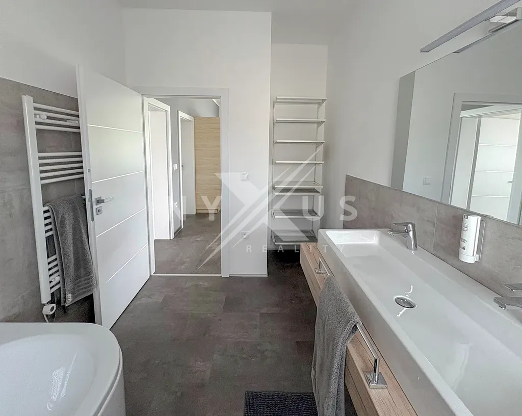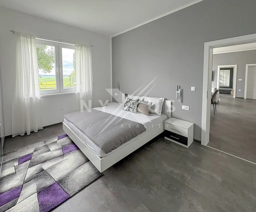 Dům je postavený z cihel, je vybavený a připravený k pohodlnému bydlení. Užitná plocha činí 140 m² (zastavěná plocha cca 160 m²) a k domu náleží prostorný pozemek o velikosti 622 m², ideální pro relax i rodinné aktivity. Komfort zajišťuje podlahové topení a elektrické tepelné čerpadlo, ve všech oknech jsou elektrické vestavěné rolety, dále žaluzie a sítě proti hmyzu. Kuchyň je vybavena mimo jiné indukční varnou deskou.
