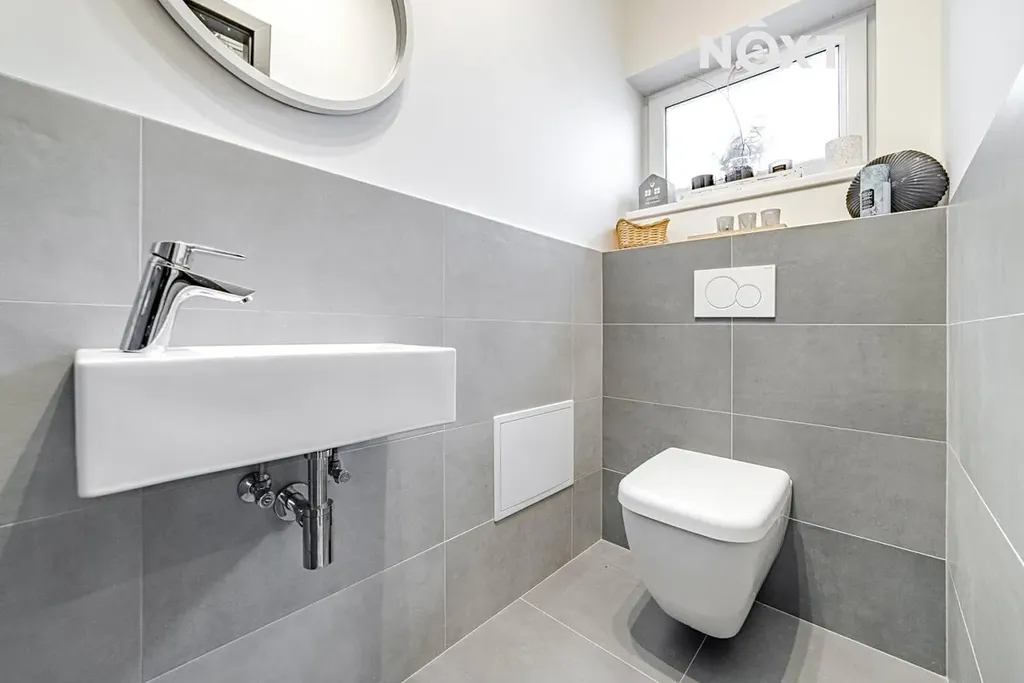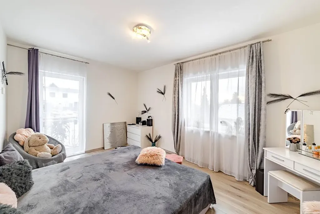 O vysoký komfort bydlení se stará elektrické podlahové vytápění, venkovní žaluzie a velmi nízké provozní náklady.