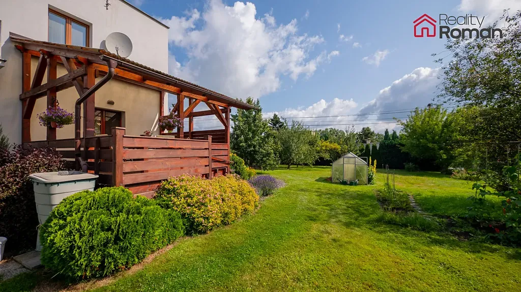 Součástí domu je rozlehlá a pečlivě udržovaná zahrada s ovocnými stromy, okrasnými keři, zeleninovými záhony, skleníkem, hospodářskou budovou a venkovním krbem. Zahrada nabízí příjemné soukromí a dostatek prostoru pro relaxaci i zahrádkářské využití.