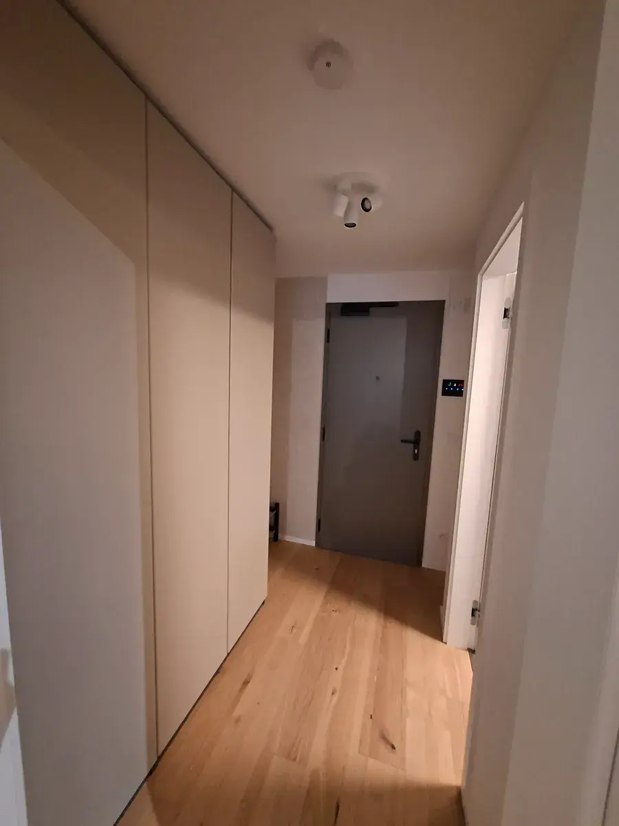 Nachází se v 6. patře (nejvyšší možné), má velkoformátová okna, venkovní žaluzie, vybaven je kuchyňskou linkou a šatní skříní.