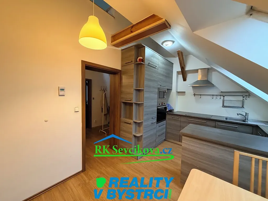 Byt má samostatný uzamykatelný vstup po schodišti, společný s majiteli domu, kteří bydlí ve spodním patře.