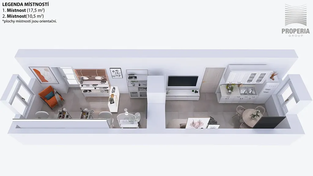 – Dvě samostatné místnosti s vlastními vstupy