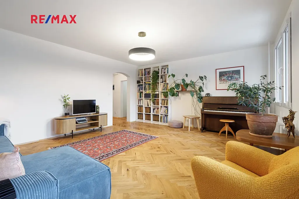 Byt je po rekonstrukci před nedávnou dobou, velkou ozdobou jsou parkety bez prahů vedoucí do ložnic, obýváku, kuchyně i chodeb. Obývák je tak velký, že by zde snadno mohla vzniknout ještě jedna ložnice. Nebo by se zde návratem k původním dveřím mohl obnovit přístup do kuchyně a v jídelně by mohla být třetí ložnice. Teď je to ale krásný velkorysý prostor se dvěma ložnicemi, obývákem s výstupem na lodžii, samostatnou kuchyní a jídelnou, která je srdcem bytu a má výstup na druhou lodžii. Velkým bonusem bytu je walk in šatna v předsíni. Koupelna je samostatná a najdete tu jak sprchový kout, tak vanu.
