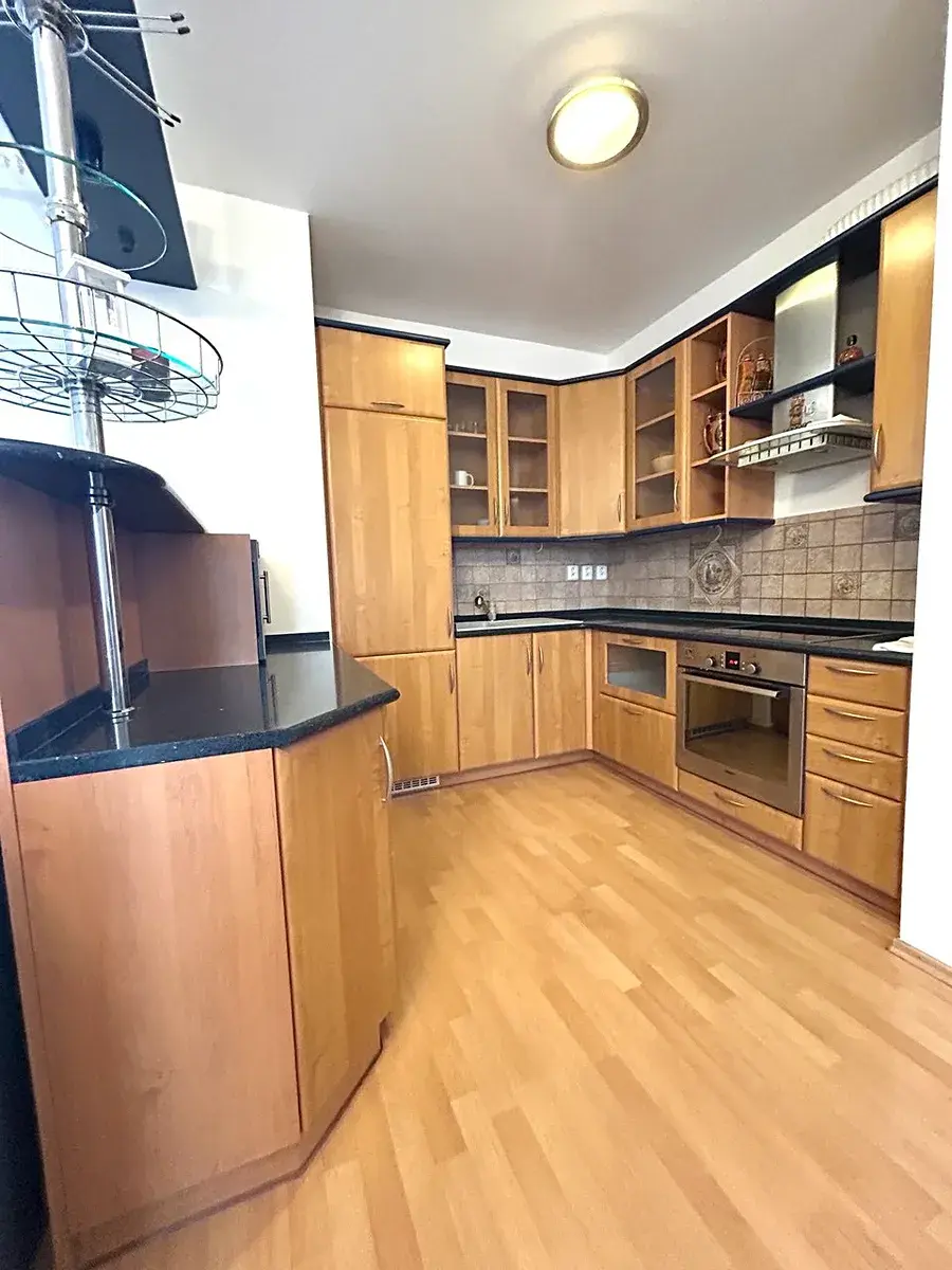 Byt je zařízený. Kuchyň je vybavená kuchyňskou linkou a elektrospotřebiči.