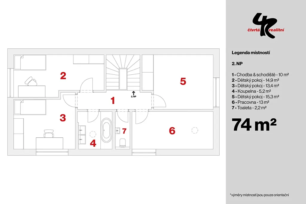 Nabízíme ke koupi novostavbu rodinného domu ve Zloníně. Dům byl kolaudovaný v roce 2022 a majitelé řešili jeho realizaci v nejvyšší kvalitě s přihlédnutím k vlastním potřebám. V domě se nachází 5 ložnic, přičemž jedna je umístěna v přízemí domu společně s prostorným obývacím pokojem s kuchyňským koutem, koupelnou se sprchovým koutem a velkým šatním prostorem u vstupu. Další ložnice jsou koncipovány do prvního patra společně s koupelnou s vanou.