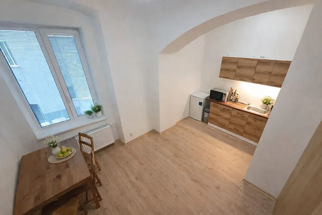Nabízíme k pronájmu světlý a prostorný byt o dispozici 1+kk, který má rozlohu 28,1 m² a nachází se v atraktivní lokalitě Brno střed, roh ulice Koliště a Trnitá. Tento byt je ideální volbou pro jednotlivce nebo pár, kteří hledají útulné a pohodlné bydlení. Díky vysokým stropům a velkým oknům je prostor příjemně prosvětlený, což přispívá k jeho vzdušnosti a pohodlí.