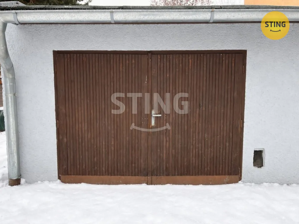 Garáž má cihlové obvodové zdi a dřevěná dvoukřídlá vrata. Je zde elektřina (osvětlení + zásuvky 230V) a odvětrávání v zadní části. Vhodná je jak pro parkování vozidla, tak i jako sklad nebo úložný prostor.