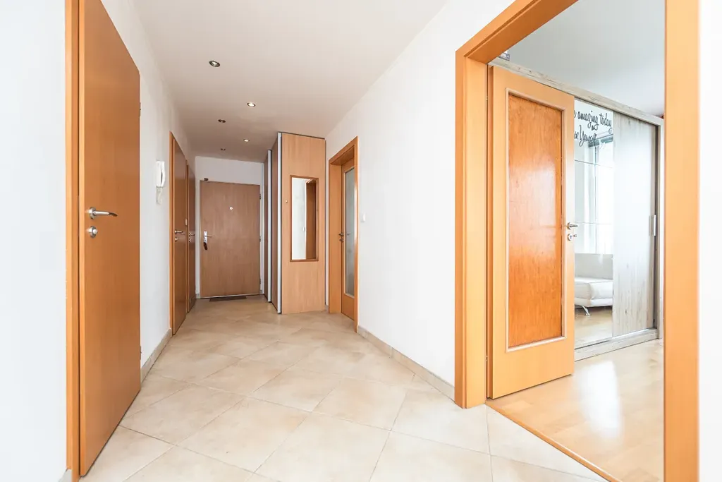 Byt 4+kk s užitnou plochou 89 m² nabízí prostorný obývací pokoj o výměře 26,7 m² s kuchyňským koutem vybaveným vestavěnými spotřebiči (trouba, varná deska, digestoř, myčka, lednice). Dále jsou k dispozici tři samostatné pokoje o velikosti 10,8 m², 13,5 m² a 13,3 m², koupelna s rohovou vanou a podlahovým vytápěním, samostatné WC, předsíň a komora.