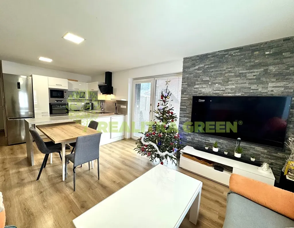 Dispozičně: 1. NP vstupní chodba, technická místnost, ložnice, koupelna s vanou a sprchovým koutem, společná s wc, dětský pokoj, kuchyň s jídelním koutem je propojená s obývacím pokojem a s portálovým vstupem na balkon. Kuchyňská linka je vybavena vestavěnými spotřebiči - myčka, indukční varná deska, horkovzdušná trouba, mikrovlnná trouba, digestoř. V ložnici je umístěna vestavěná skříň.V 1. PP (suterénu) je 3x technická místnost se dvěma samostatnými venkovními dveřmi. Jedna z místností je po rekonstrukci 2024 (vnitřní zateplení stěn i podlahy, nové wc, bojler), kterou lze využít jako společenskou místnost.