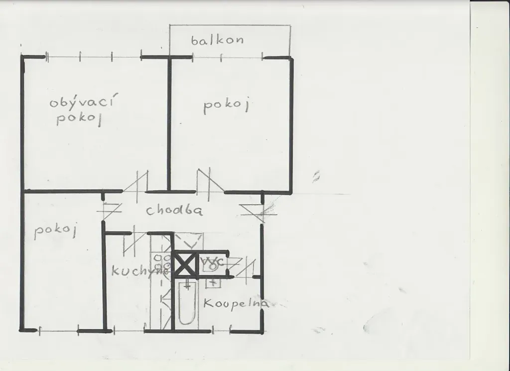 Celková podlahová plocha bytu činí 64 m²+ (balkon 3 m2) + zděná sklepní koje s oknem (6 ) m². Byt je v dobrém stavu k okamžitému nastěhování.