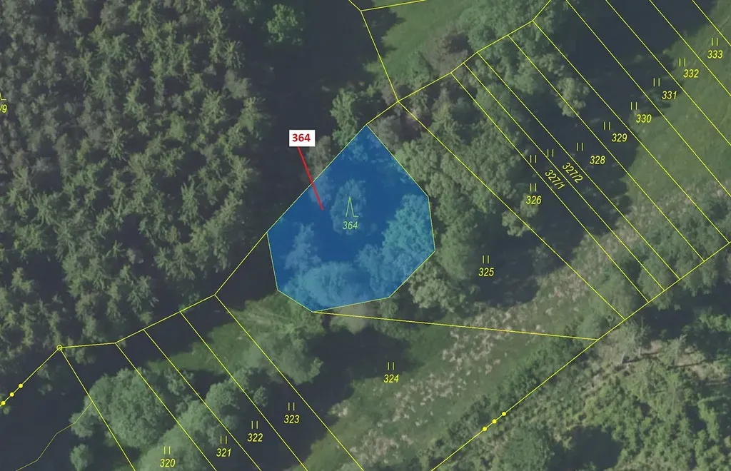 Lesní pozemek o výměře 838 m2, parcelní číslo 364, podíl 1/1, katastrální území Bolina, obec Vlašim, obec s rozšířenou působností Vlašim, okres Benešov, Středočeský kraj.