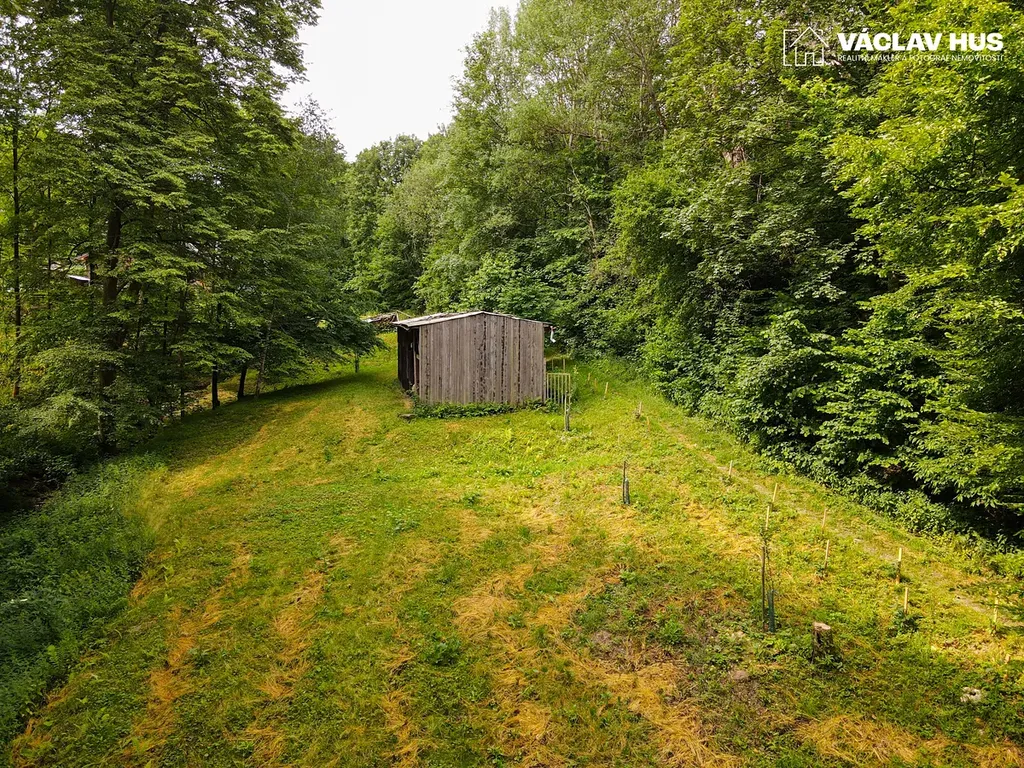 Na pozemku jsou dvě stodoly, jedna u domu s krytým parkovacím místem, garáží, dílnou a využitelným podkrovím, druhá stodola je určená pro úschovu zemědělské techniky a zvířata. Pozemkem protéká malý potůček.