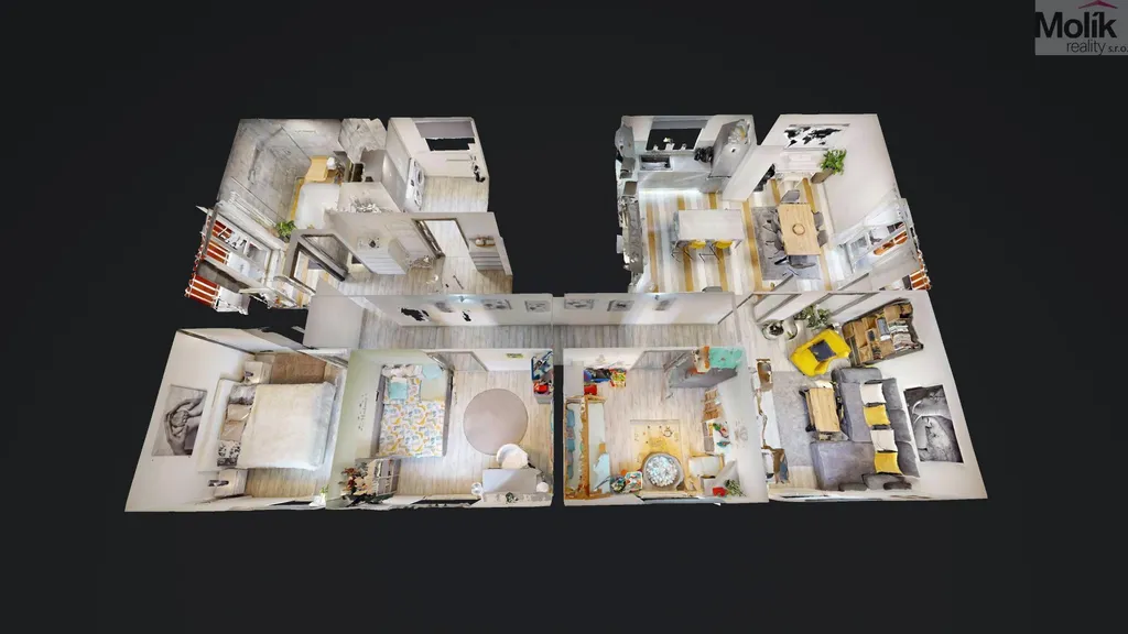 Byt nabízí celkem 4 pokoje, což zajišťuje dostatek prostoru pro celou rodinu. 5 pokoj slouží jako technická místnost s úložnými prostory Všechny pokoje jsou světlé a prostorné, s dostatkem přirozeného světla a výhledem do okolí.
