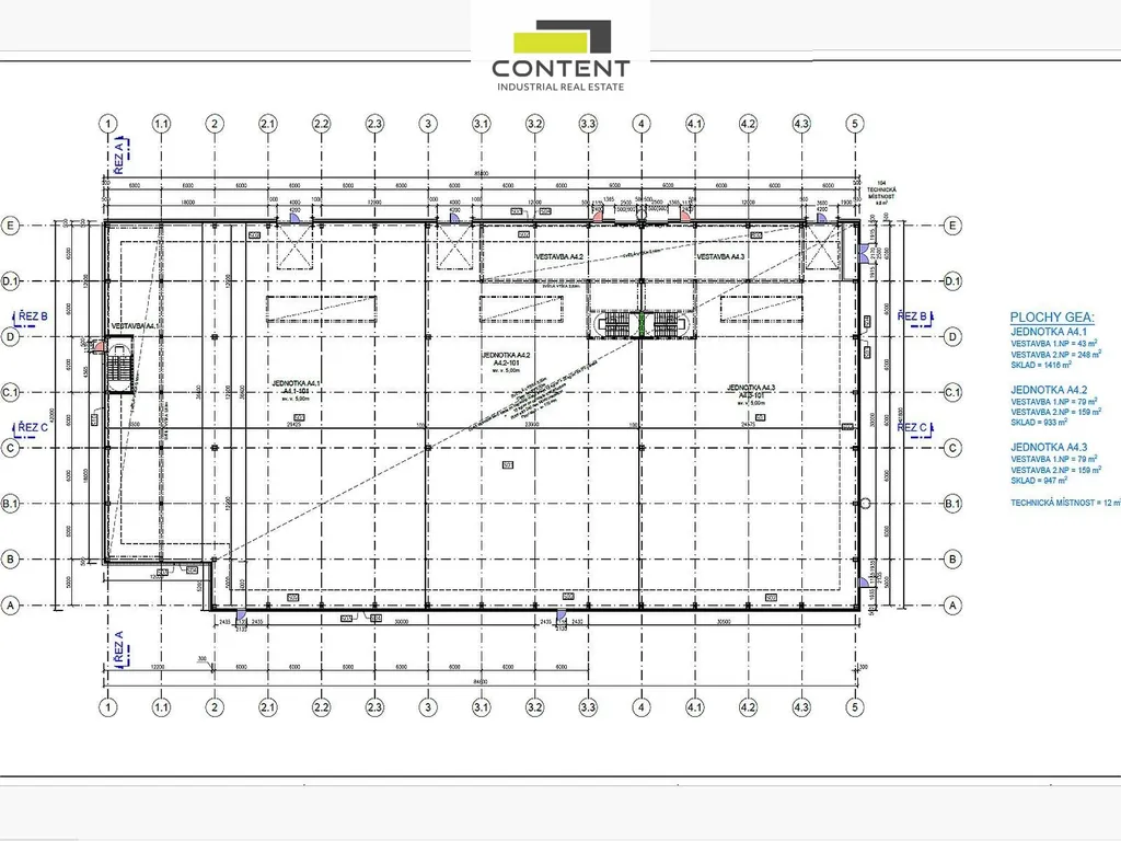 - volná část budovy D1/D2 2889 m² ve výstavbě, k dispozici 02/2026