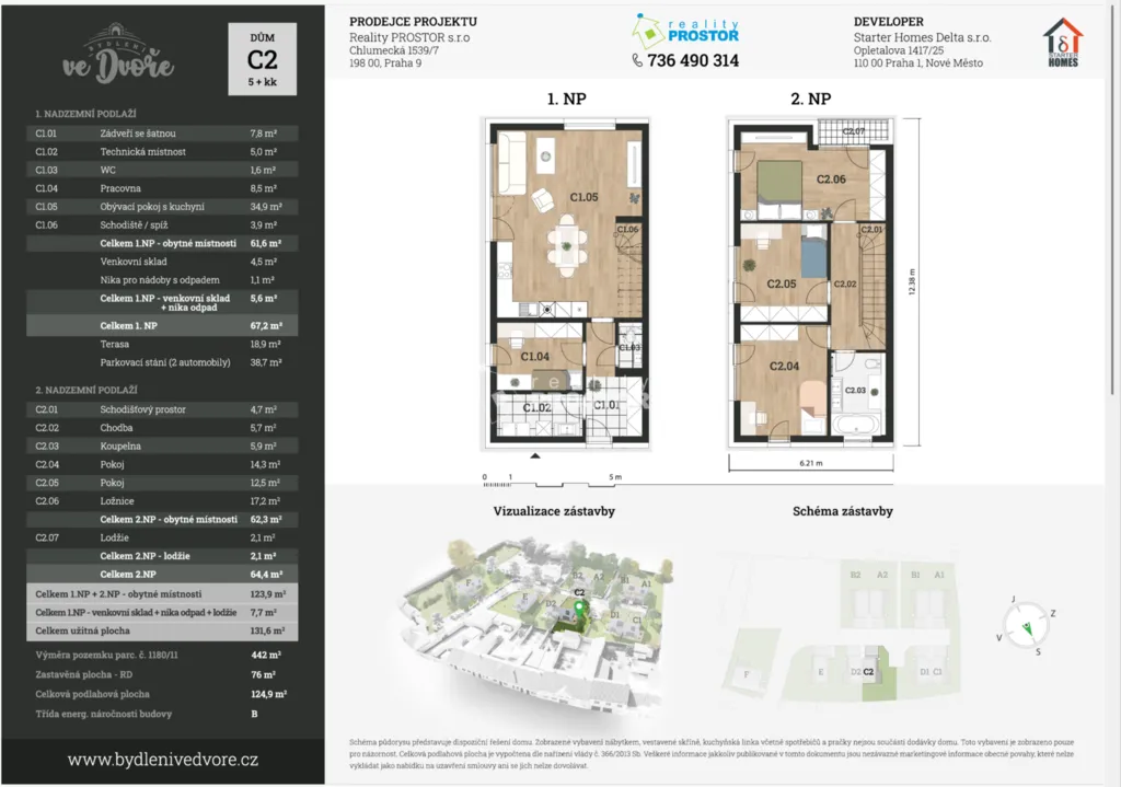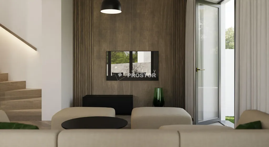 Jedná se o dvoupodlažní, moderní rodinný dům (dvojdům) 5+kk, 131,7m2, s plochou střechou, který je postaven na pozemku o rozloze 406 m2, v rezidenční čtvrti, v centru města Roudnice nad Labem. Dispoziční členění rodinného domu je ideálních 5 pokojů + kuchyňský kout.