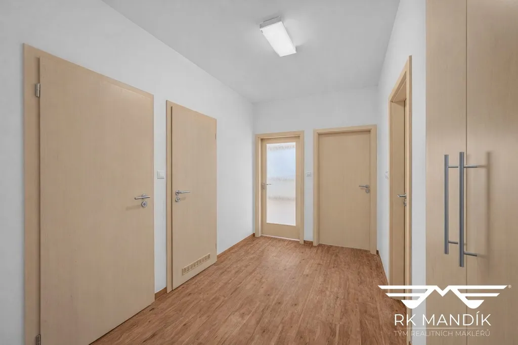 Byt (61,31 m²) je východně orientovaný a pronajímá se nezařízený (vyjma kuchyňské linky a vestavného úložného řešení v chodbě).