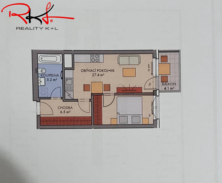 Vnitřní dispozice: Vstupní chodba kde se nachází vstup do obývacího pokoje spojeného s kuchyňským koutem, který nabízí přímí vstup na balkón a dále vstup do ložnice. Z chodby je vstup do koupelny s toaletou. Koupelna v ceně, plně zařízená, obložkové dveře. Kuchyň a podlahy nejsou součastí prodeje. Bytový dům bude zabezpečen kamerovým systémem.