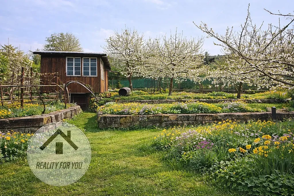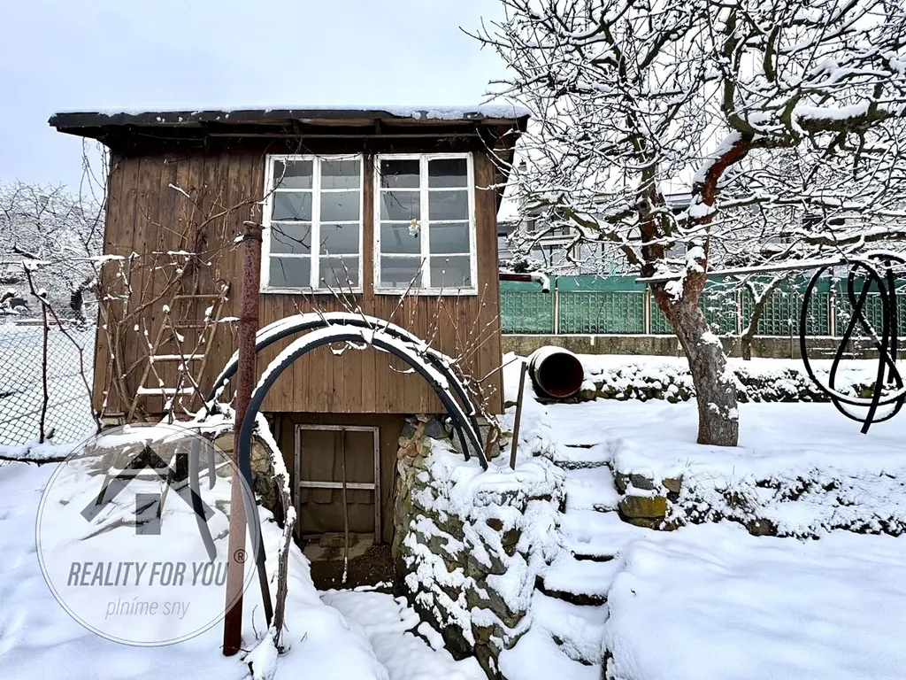 Pozemek je lehce svažitý. Majitelé zde vybudovali terasy atak zahrádka má jednotlivé zóny. V horní části je umístěna stavba dřevěné chatky s přístavky (suché wc a kůlna), chatka je podsklepena. Stavba je ke kompletní rekonstrukci či výměnu, anebo může sloužit jako doposud - sklad. Terasy jsou ideální pro výsadbu zeleniny.