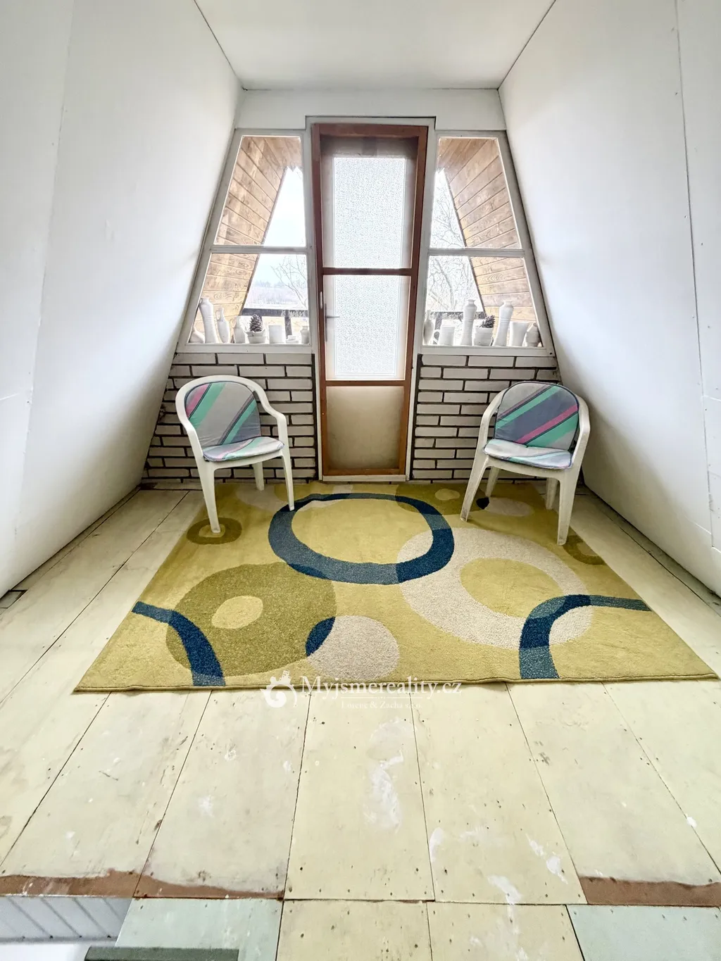 Na pozemku stojí zděná dvoupodlažní chatka o zastavěné ploše 12 m², zapsaná v katastru nemovitostí. Disponuje komínem, v přízemí je místnost s kamny, v podkroví je další ložnice s možností vybudování "spaní" – ideální zázemí pro pobyt během sezóny.